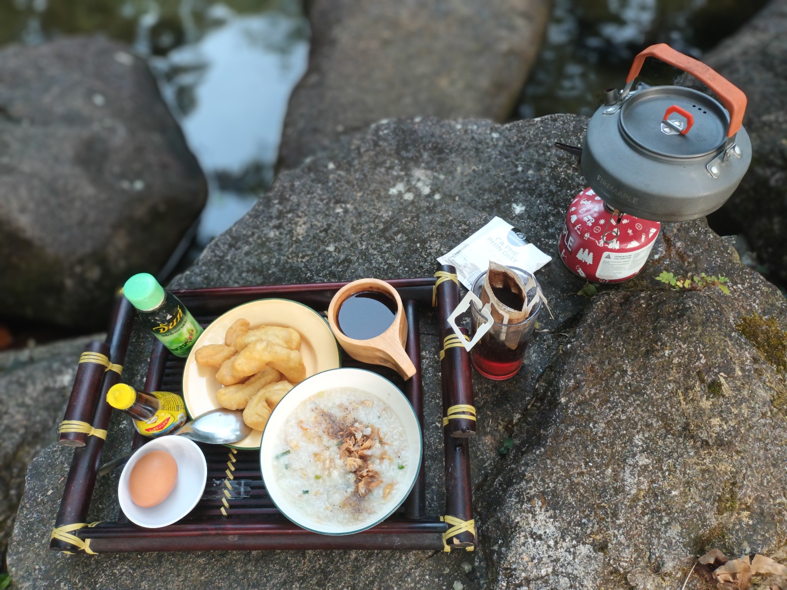 ต้มน้ำเพื่อดริปกาแฟเพิ่ม นั่งกินหน้าสระว่ายน้ำอย่างมีความสุข เพราะบรรยากาศดีต่อใจ อากาศเย็นสบาย อิ่ม อร่อย คิดไม่ผิดจริงๆ ที่สั่งลานครับ