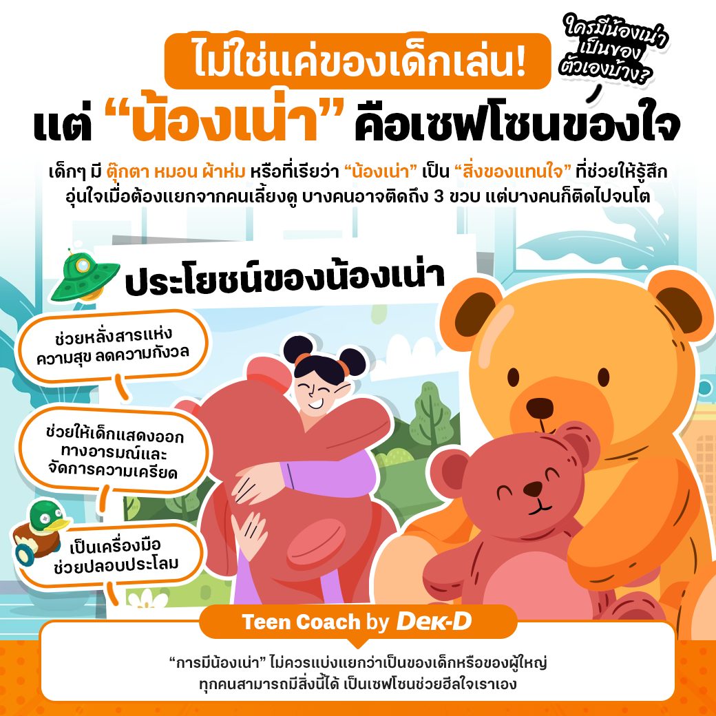 อ่านเพิ่มเติมต่อได้ที่ เว็บ Dek-D.com Teen Coach EP.92 : สารภาพมาซะดีๆ ใครยังติด 'ตุ๊กตา' หรือ 'หมอนเน่า' บ้าง?