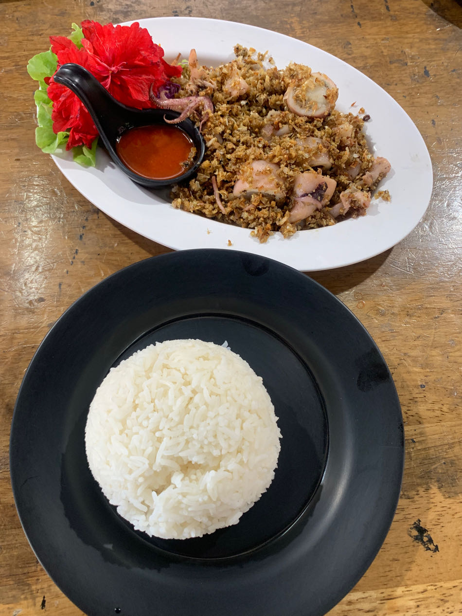 - อาหาร (หมึกไข่กระเทียม) : 150 บาท