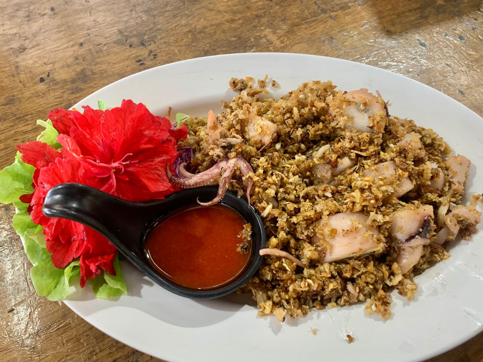 หมึกไข่ กระเทียมเยอะมากเค็มนำ