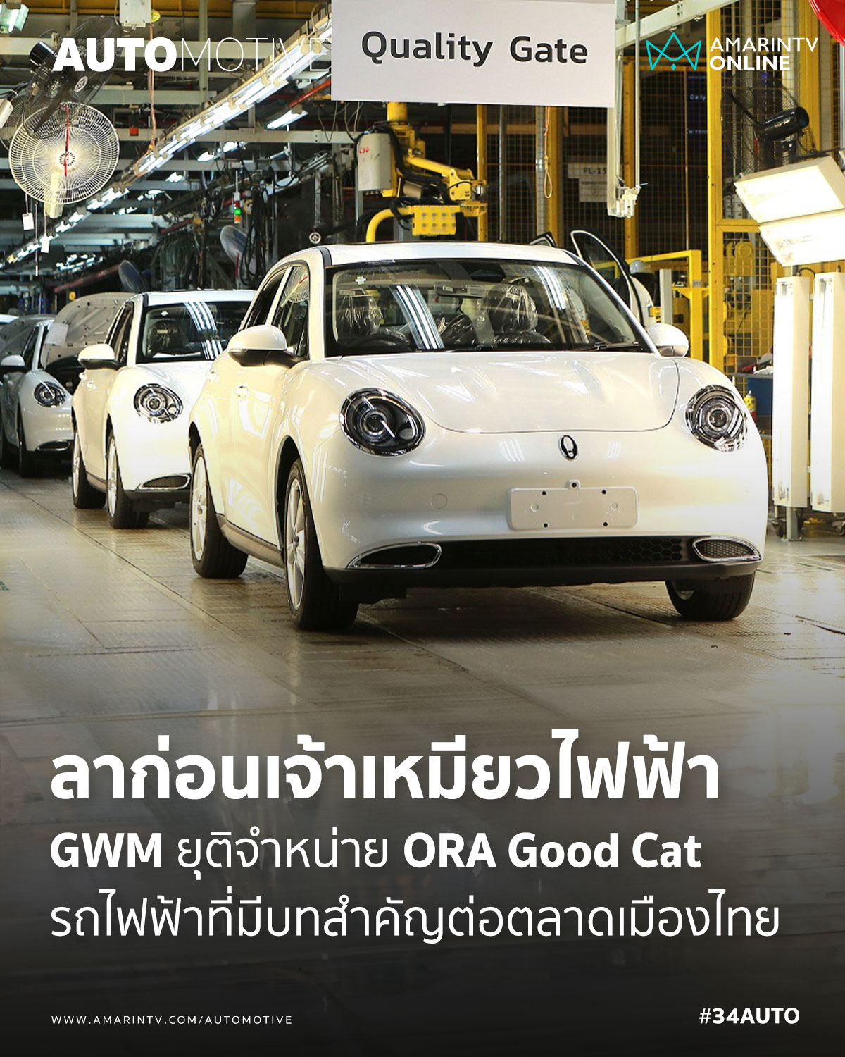 GWM (Thailand) ประกาศหยุดจำหน่าย GWM ORA Good Cat ในตลาดประเทศไทยอย่างเป็นทางการแล้ว หลังเปิดตัวครั้งแรกเมื่อตุลาคม 2564 และกลายเป็นรถยนต์ไฟฟ้าที่ได้รับกระแสตอบรับเป็นอย่างสูง ด้วยยอดขายสะสมกว่า 20,827 คัน โดยเตรียมนำ GWM ORA 5 SUV และรถยนต์รุ่นใหม่เข้าสู่ตลาดอย่างน้อย 5 รุ่นในปี 2569 รวมถึงตั้งเป้าเดินหน้าขยายเครือข่ายผู้จำหน่ายเป็นกว่า 100 แห่งทั่วประเทศ