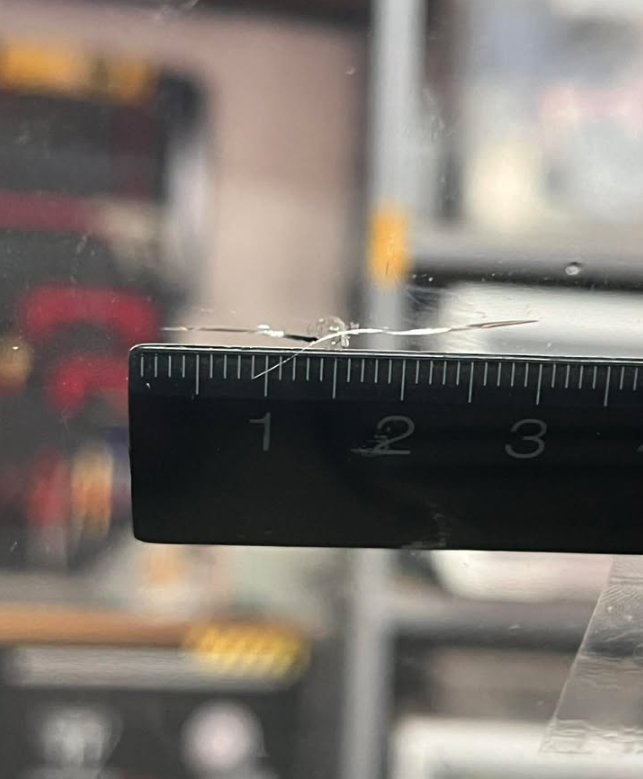 เมื่อ 2 วันก่อนกำลังขับรถกลับบ้านที่พัทยา วิ่งมาทางเส้นบายพาสชลบุรี วิ่งมาเลนขวาสุด ความเร็ว 110 ขับตามกันมาแต่ทางซ้ายมีรถบรรทุกวิ่งขับมาเป็นด้วยเช่นกัน โดนหินกระเด็นใส่กระจก รูขนาดเท่าเม็ดกระดุมและมี