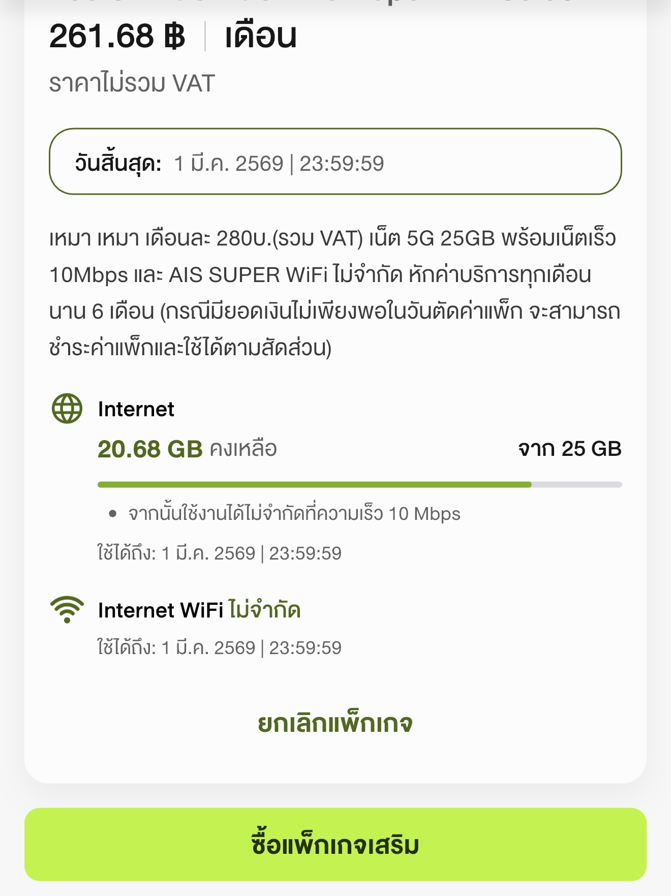 อยากยกเลิกแพ็คเกจเสริม ais