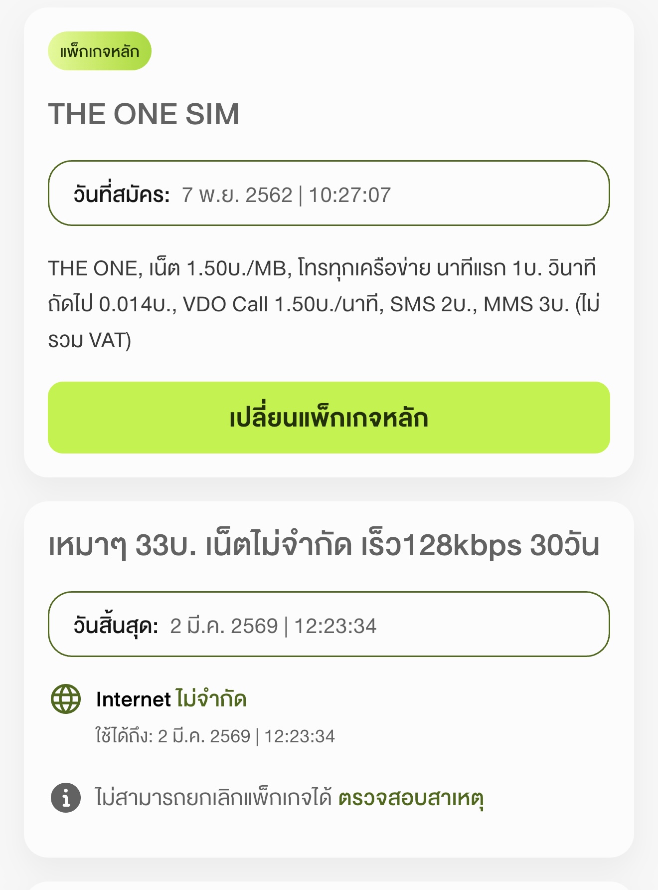 พอดีสมัครเน็ต2แพ็กเกจถ้าเน็ตเสริม GB หมด อยากรู้ว่า เราเล่นโปรไหน อยากยกเลิกเหมาๆ33บาทแต่ไม่มีที่ให้กดยกเลิก