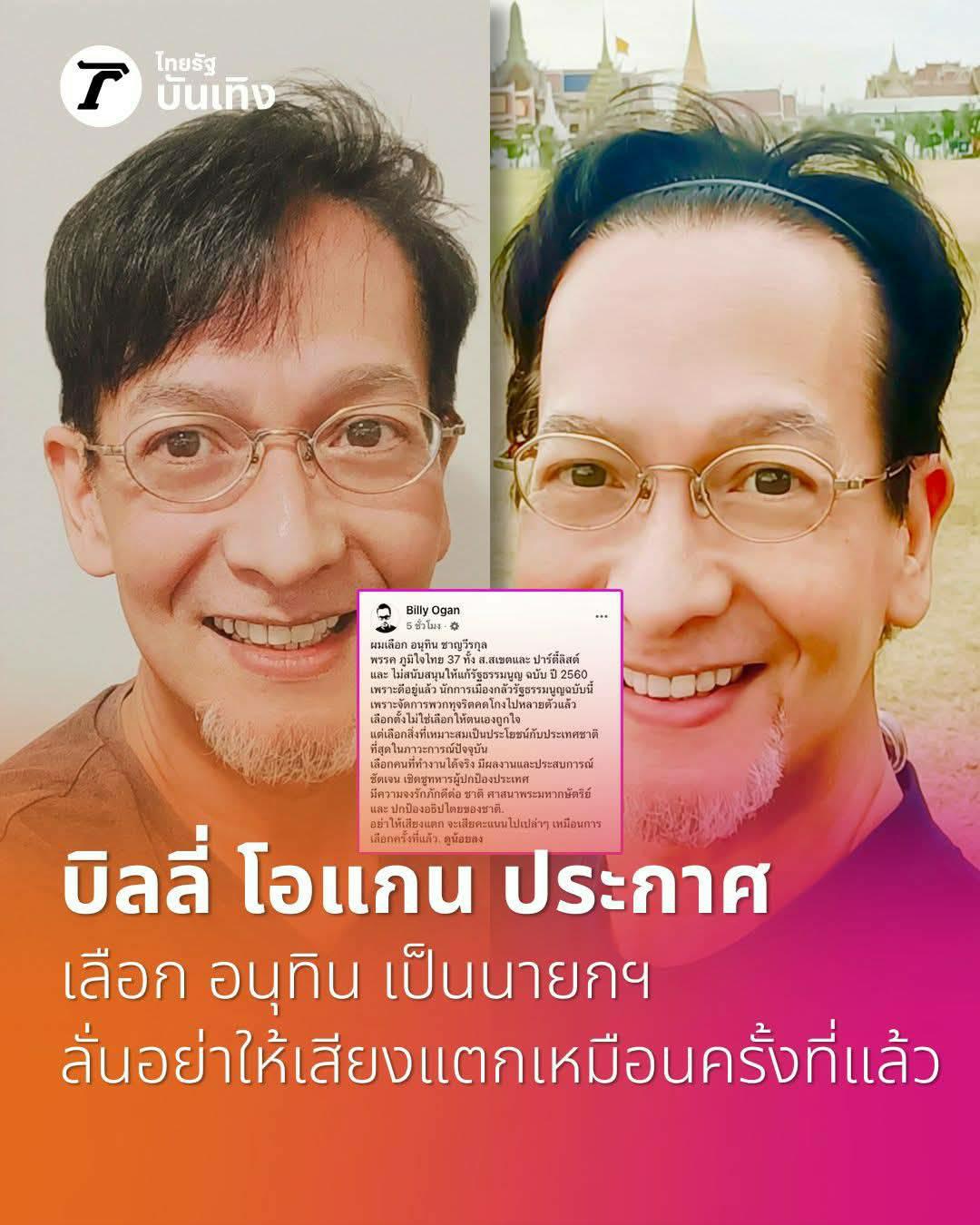 บิลลี่ โอแกน ประกาศเลือก อนุทิน เป็นนายกฯ