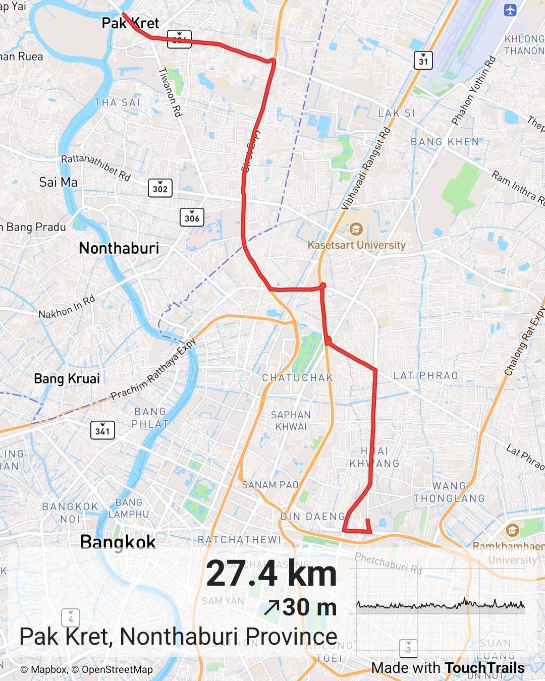 - บางพลัด - พระราม 7 - วงศ์สว่าง - ประชานุกูล - พงษ์เพชร - เกษตร - ม.ศรีปทุม - อู่บางเขน (ขสมก. เขต 6)