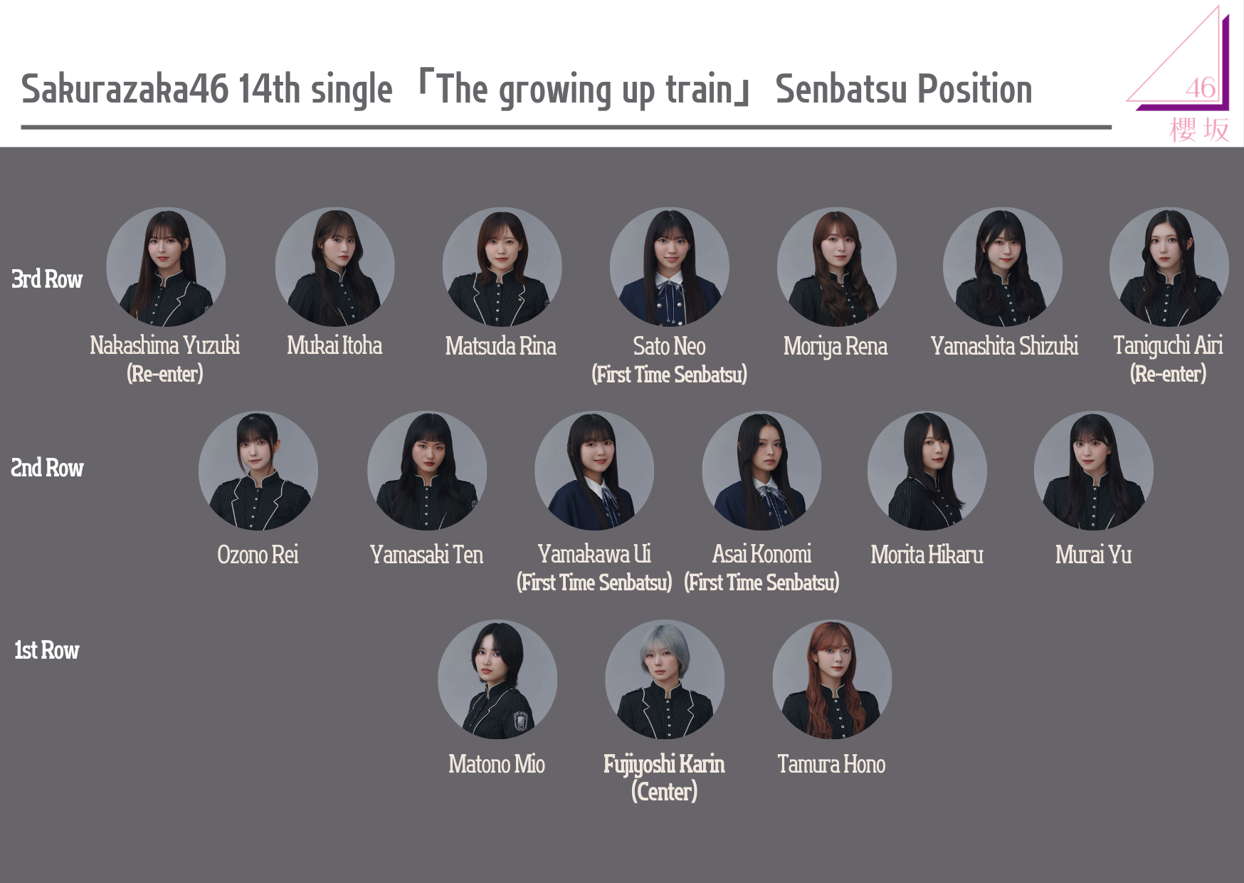 Sakurazaka46 ประกาศเซ็มบัตสึซิงเกิลที่ 14 「The growing up train」พร้อมตำแหน่งเซ็นเตอร์
