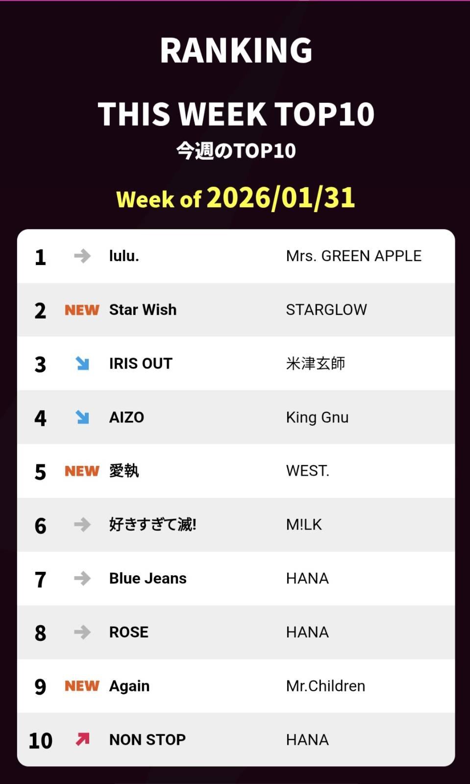 RANKING THIS WEEK TOP10 Week of 2026/01/31 CDTV Live! Live!