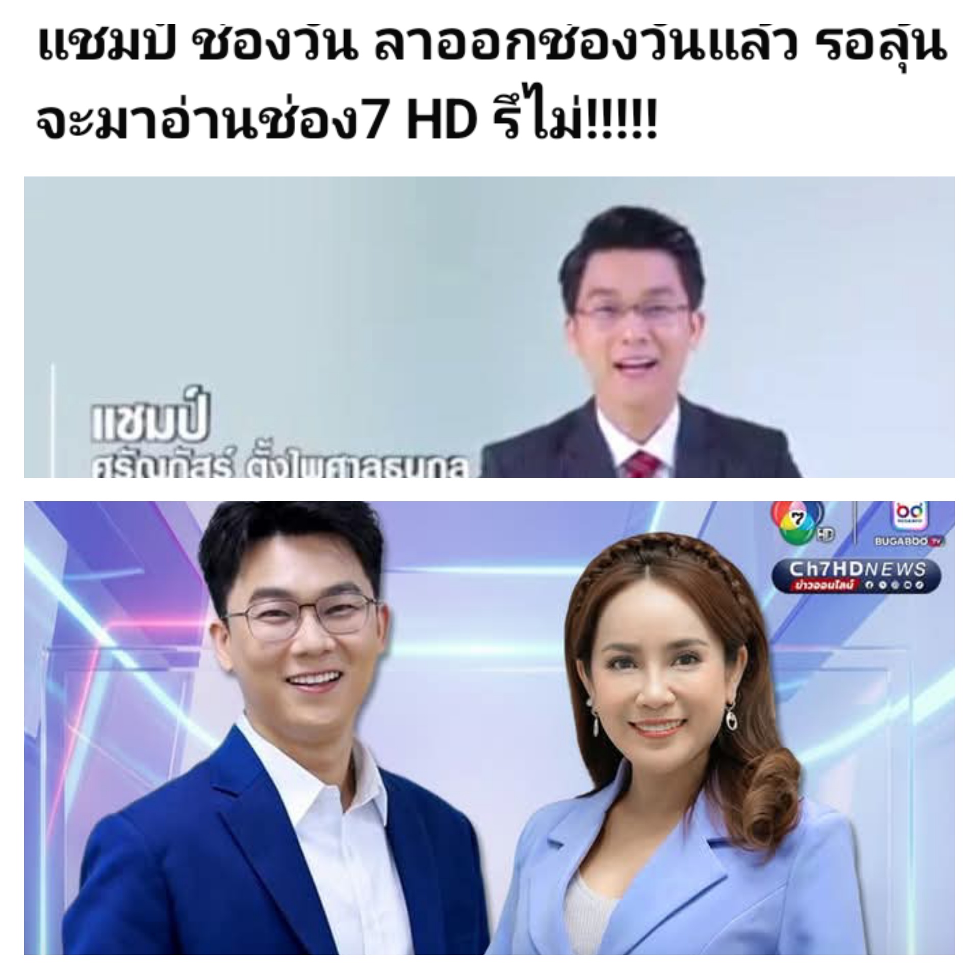 จากคำใบ้รอลุ้นว่าพี่แชมป์ ช่องวัน ได้โยกมา หมอชิต เป็นข่าวจริง ได้เป็นผู้ประกาศข่าวหล่อตี๋ ช่อง7hd ทำให้มีกระแสมาแรง