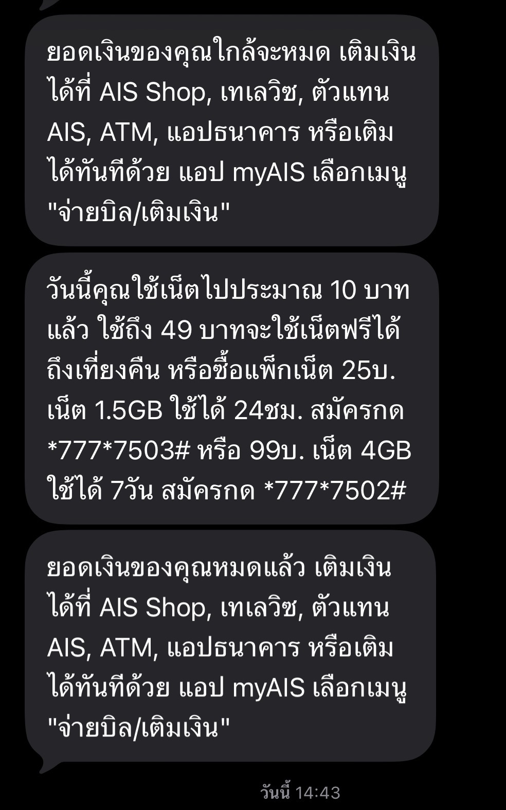 AIS ไม่หักค่าแพ็คเกจ