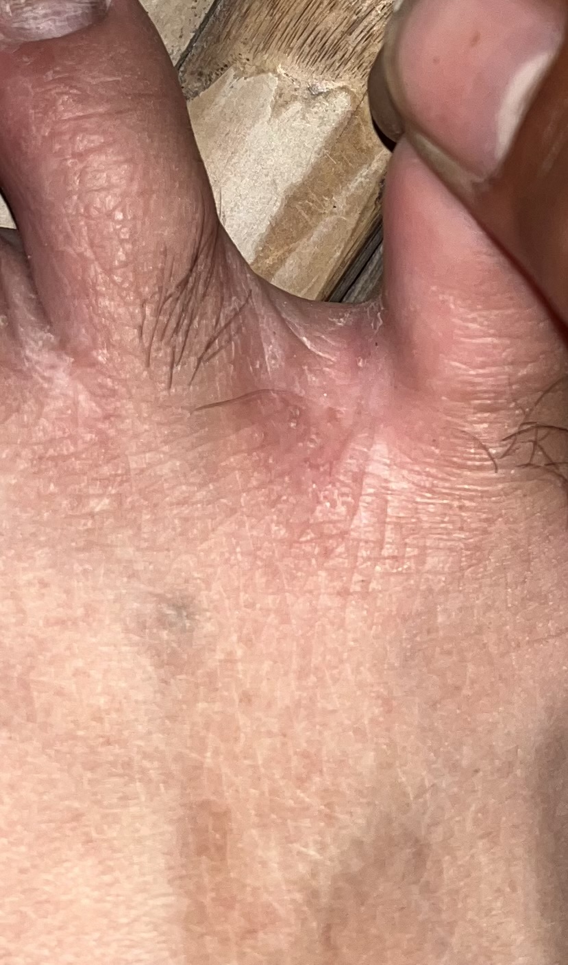 สวัสดีค่ะพี่ๆหนูมีอาการเจ็บซอกนิ้วเท้าระหว่างนิ้วโป้งกับนิ้วชี้ ลอกนิดหน่อยและแดงๆค่ะ ไม่คันแล้วก็ไม่บวมค่ะแต่เวลาเดินจะเจ็บมากๆเป็นแค่ระหว่างสองนิ้วนี้ข้าข้งเดียวค่ะ เป็นๆหายๆเป็นครั้งล่าสุดเดือนก่อน