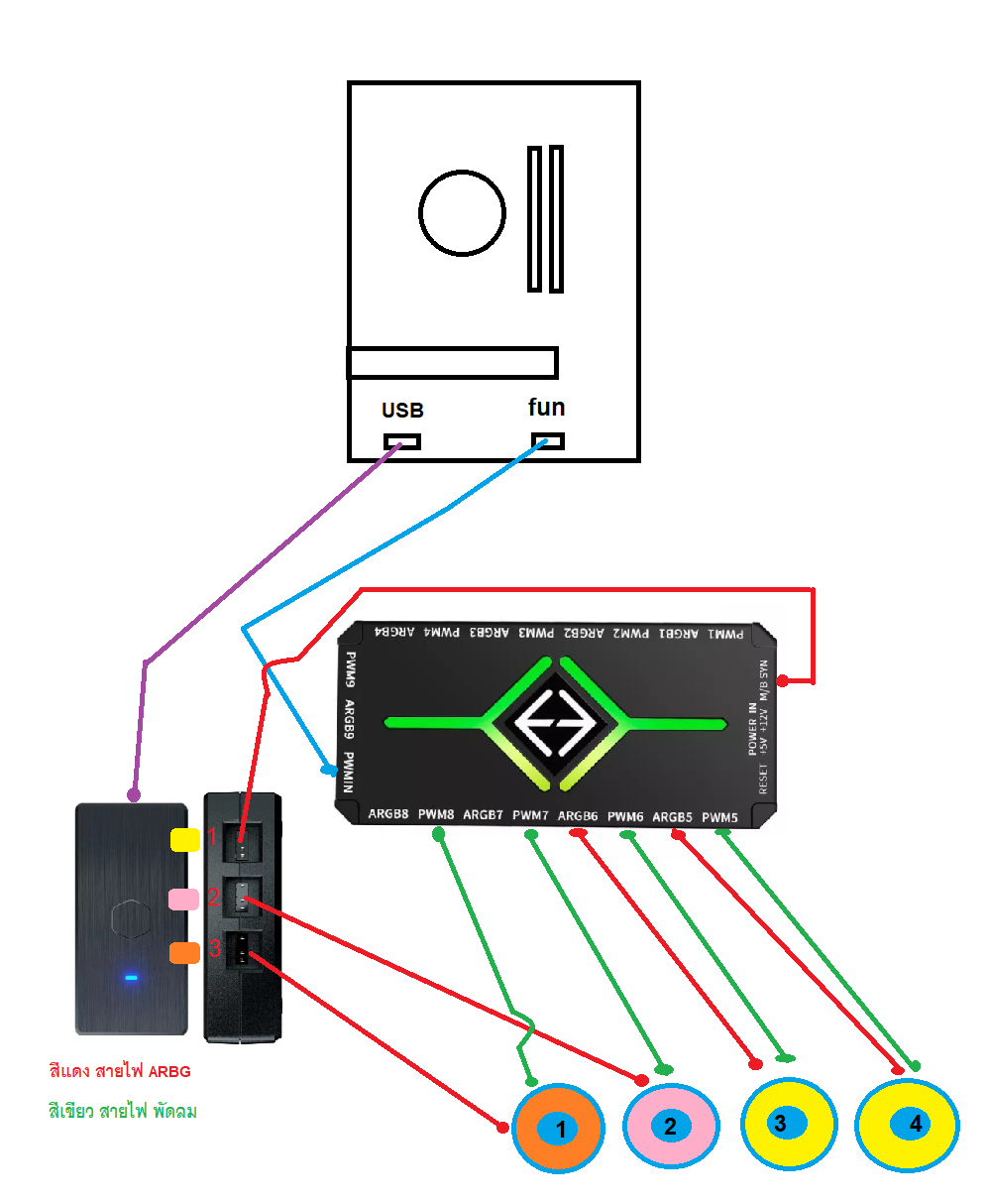มาเป็นตัวส่ง ARGB Sync ไปยัง กล่อง ARGB Controller ตัวธรรมดา เพือปรับสีไฟ ในโปรแกรมของ Cooler Master แทนโปรแกรมของ