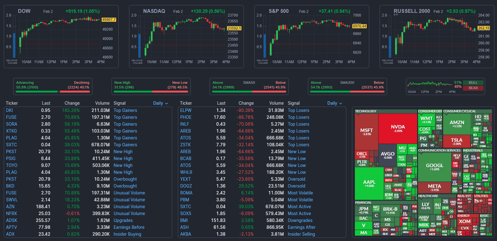 และ Dow Jones Industrial Average ปรับขึ้น 1.05% ปิดที่ 49,407.66 จุด