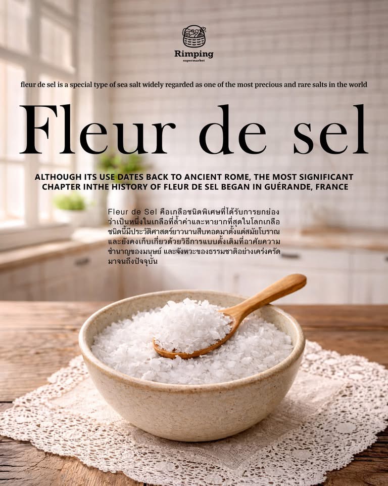 Fleur de Sel (เฟลอร์ เดอเซล) คือเกลือชนิดพิเศษที่ได้รับการยกย่องว่าเป็นหนึ่งในเกลือที่ล้ำค่า และหายากที่สุดในโลก เกลือชนิดนี้มีประวัติศาสตร์ยาวนานสืบทอดมาตั้งแต่สมัยโบราณ และยังคงเก็บด้วยวิธีการแบบดั้งเดิมที่อาศัยความชำนาญของมนุษย์ และจังหวะของธรรมชาติอย่างเคร่งครัดมาจนถึงปัจจุบัน