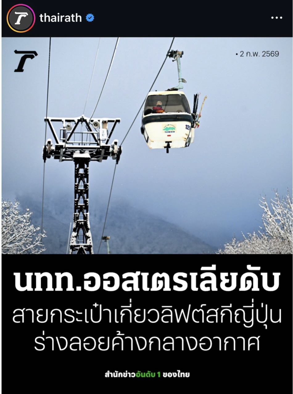นักท่องเที่ยวสาวออสเตรเลียเสียชีวิตจากอุบัติเหตุลิฟต์สกีที่ญี่ปุ่น