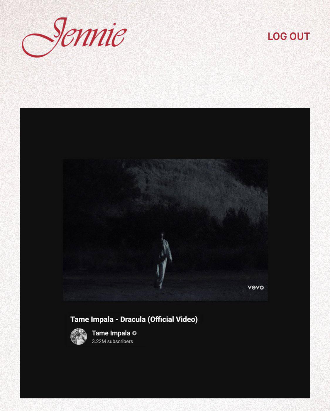 JENNIE อัปเดตเว็บไซต์ (rubies.jenn.ie) ด้วยภาพหน้าจอของเพลง “Dracula” โดย Tame Impala 👀
