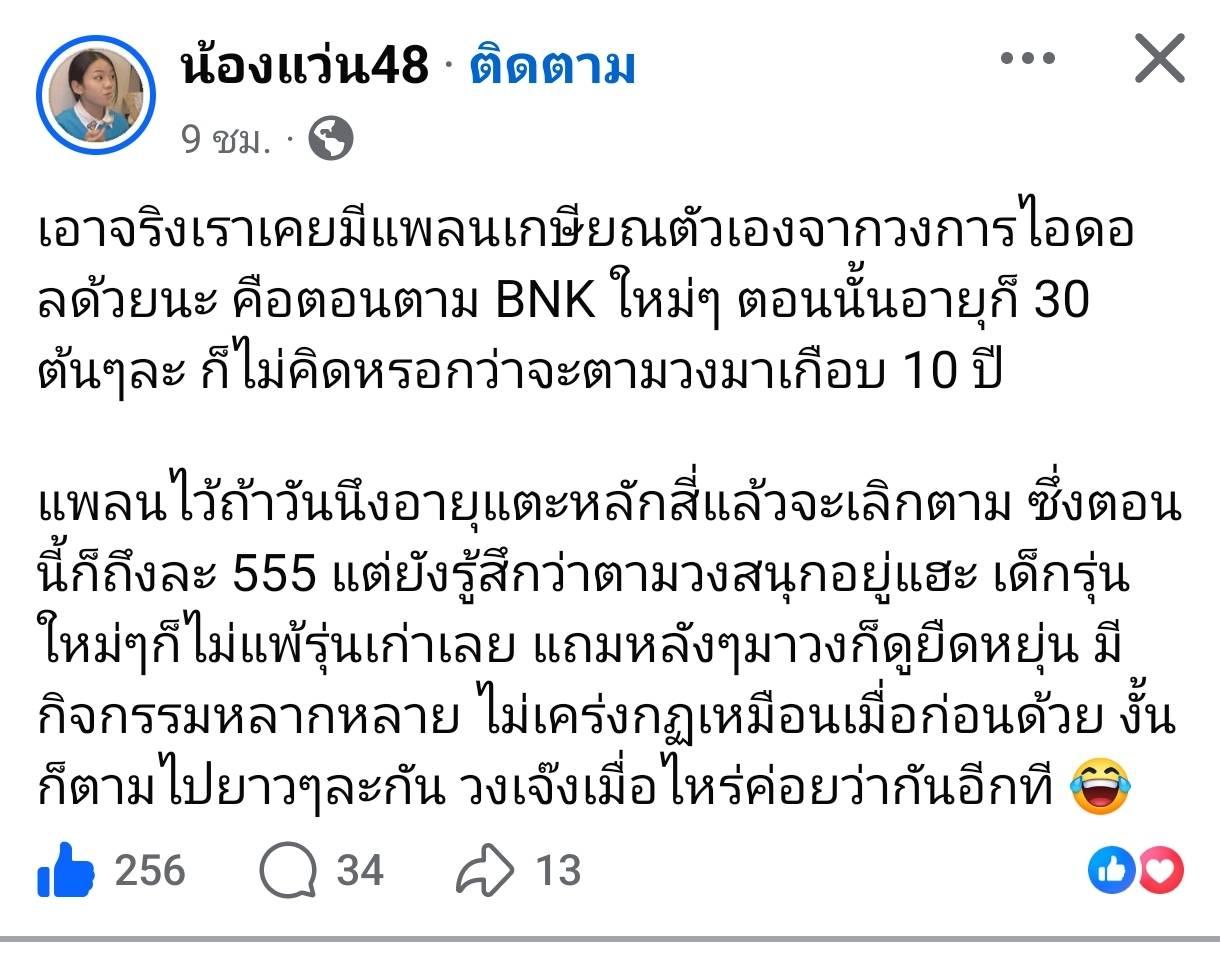 ไม่ใช่แค่เป็นคนที่ตามใครในวงเท่านั้น เราสามารถสนับสนุน เมม คนอื่นๆ หรือ เด็กรุ่นใหม่ได้ต่อไป