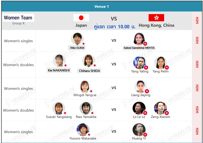Court 1 Women Team Group X [Japan vs Hong Kong China] มีถ่ายทอดสด