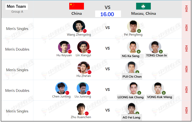 Court 1 Men Team Group A [China vs Macau China] มีถ่ายทอดสด