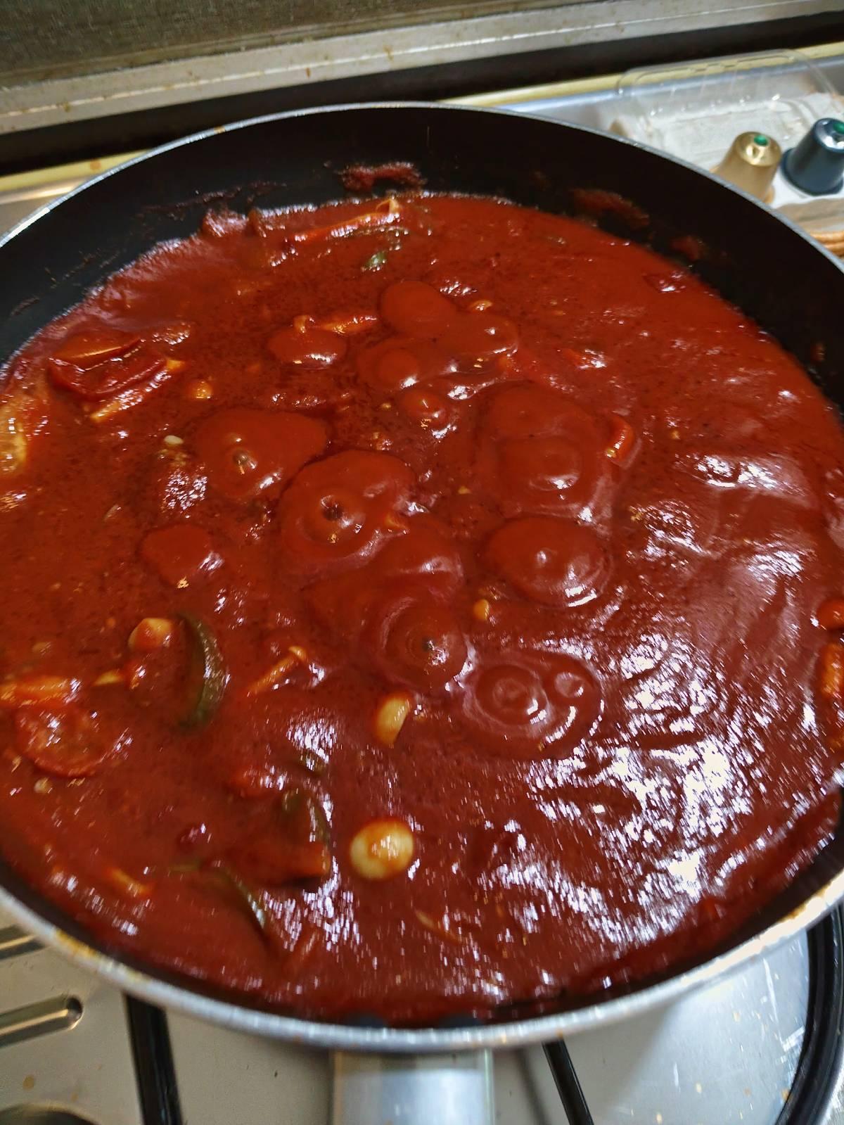 ทำไมถึงมารวมกันได้ เพราะว่า ช่วงศตวรรษที่ 18 อิตาลีได้พัฒนาอุตสาหกรรมผลิตมะเขือเทศกระป๋องขึ้นอย่างเป็นล่ำเป็นสัน