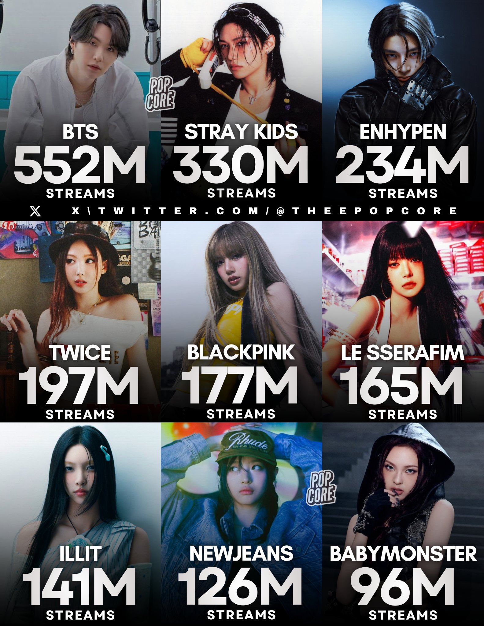 กลุ่ม K-pop ที่มียอดการฟังมากที่สุดบน Spotify ในเดือนมกราคม 2026