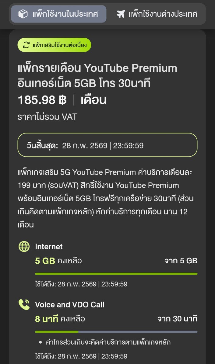 สมัคร YouTube premium + internet และ โทร ของ AIS ต่อเดือนที่ 2 ไม่ได้