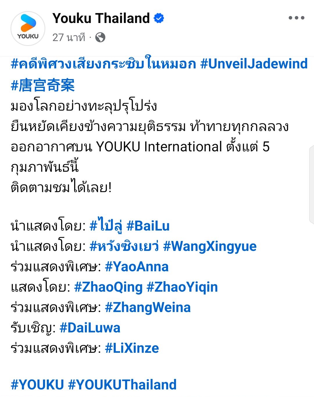 📌 #คดีพิศวงเสียงกระซิบในหมอก #UnveilJadewind #唐宫奇案 ▶️ YOUKU International ตั้งแต่ 5 กุมภาพันธ์นี้ 🔴