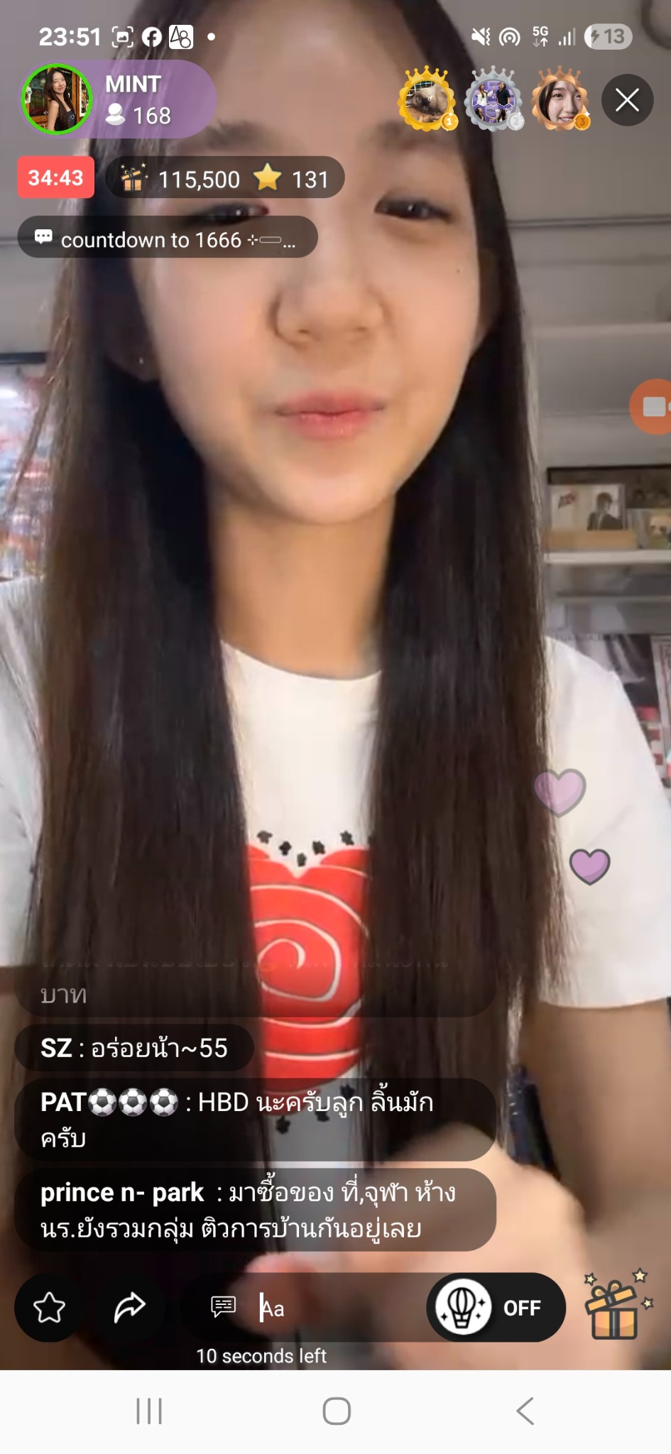 Live กันเยอะเลย วันนี้ มือถือ 3 เครื่องไม่พอ mint bnk ได้ช็อคมิ้นท์ live ข้ามวันเกิด น้ำมนต์ ไข่มุก rose
