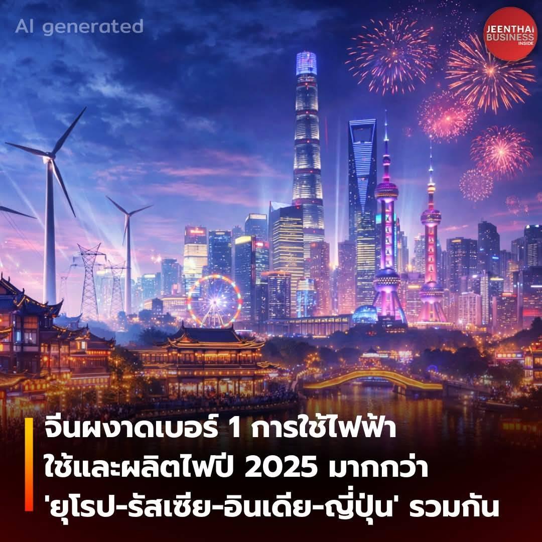 ⚡ จีนผงาดเบอร์ 1 การใช้ไฟฟ้า ใช้และผลิตไฟปี 2025 มากกว่า 'ยุโรป-รัสเซีย-อินเดีย-ญี่ปุ่น' รวมกัน