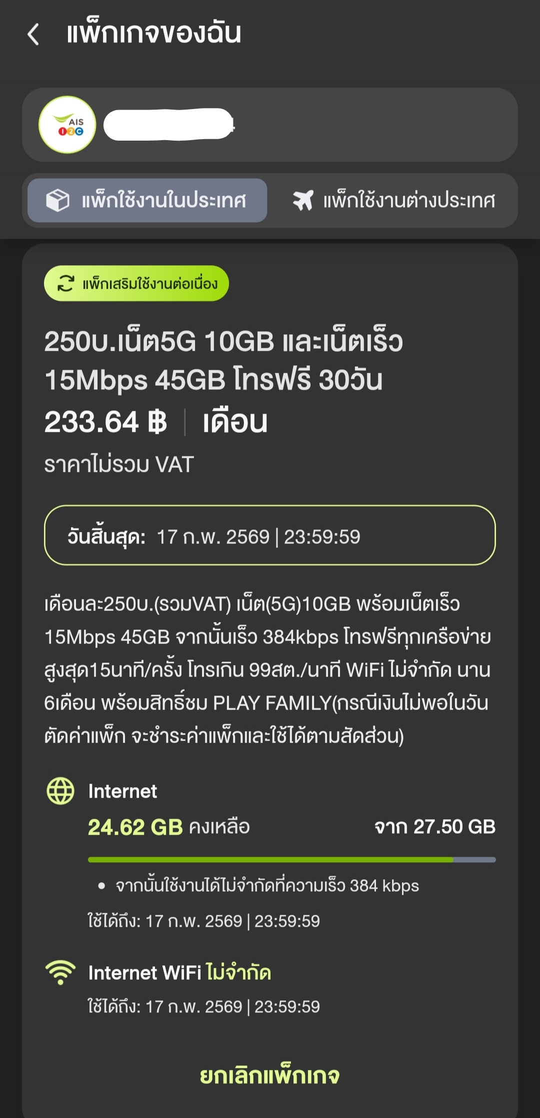 เติมเงินแล้ว แพ็คเกจเน็ตไม่ตัดเงินให้