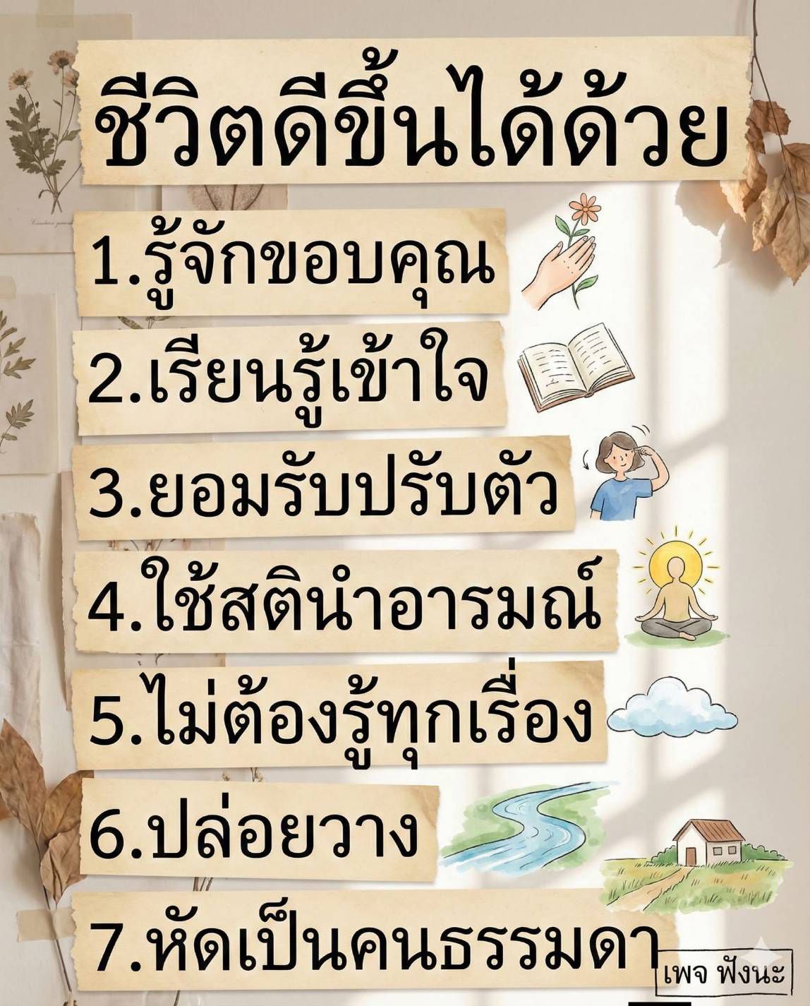 ชีวิตดีขึ้นได้ด้วยเ รียนรู้เข้าใจ ยอมรับปรับตัว ใช้สตินําอารมณ์ ปล่อยวางไม่ต้องรู้ทุกเรื่อง หัดเป็นคนธรรมดา