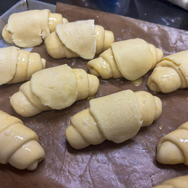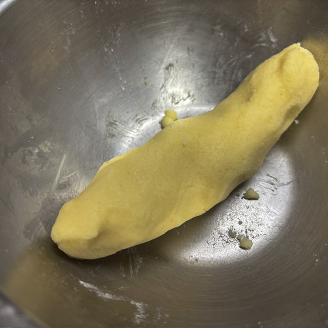 พักให้ให้ยีสต์ทำงานสัก 50 นาที แล้วทำเป็นก้อนแยกไว้ พักอีกสัก 15 นาทีก็เอามารีดได้เลย หลังจากรีดก็พักไว้ที่เย็นอีกสัก 1 ชม