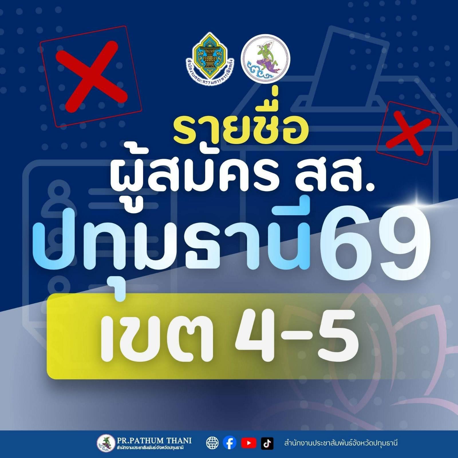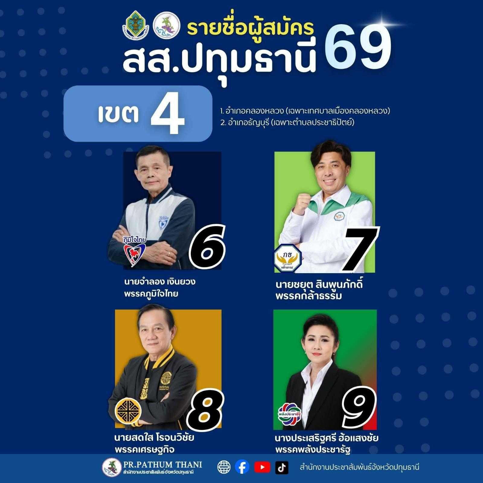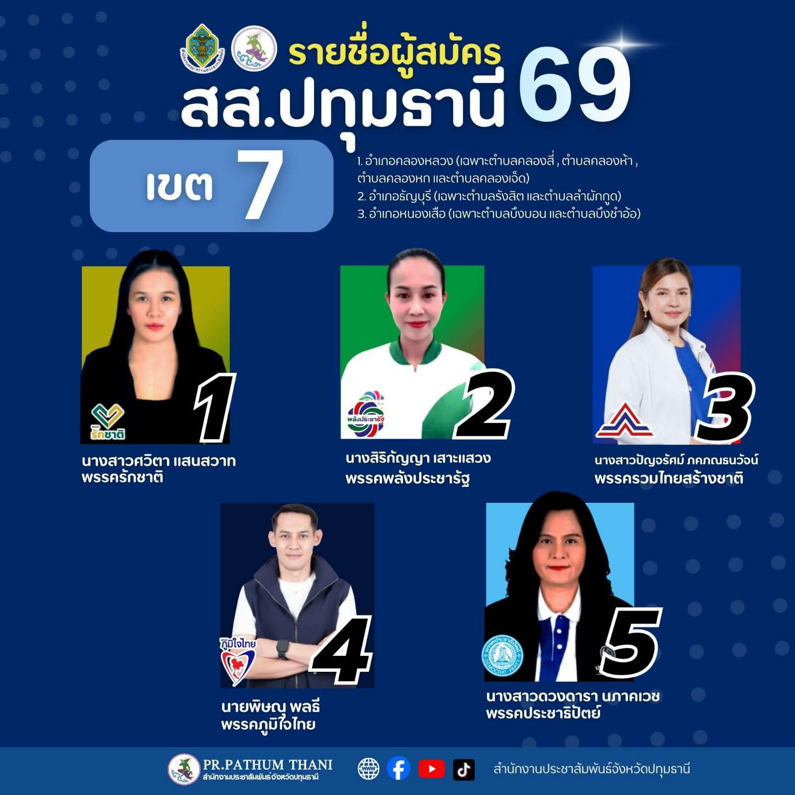 เปิดรายชื่อผู้สมัครสมาชิกสภาผู้แทนราษฎร (สส.) ปี 2569 จังหวัดปทุมธานี ครบทั้ง 8 เขตเลือกตั้ง