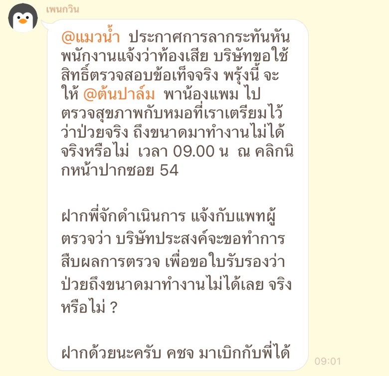 ตามภาพด้านบนเลยค่ะ น้องในแผนกมีการลาป่วยกระทันหันเพราะท้องเสีย แต่โดนมาแท็กในไลน์กลุ่มแบบนี้ จนน้องลาออก ทุกคนคิดเห็นว่าอย่างไรคะ