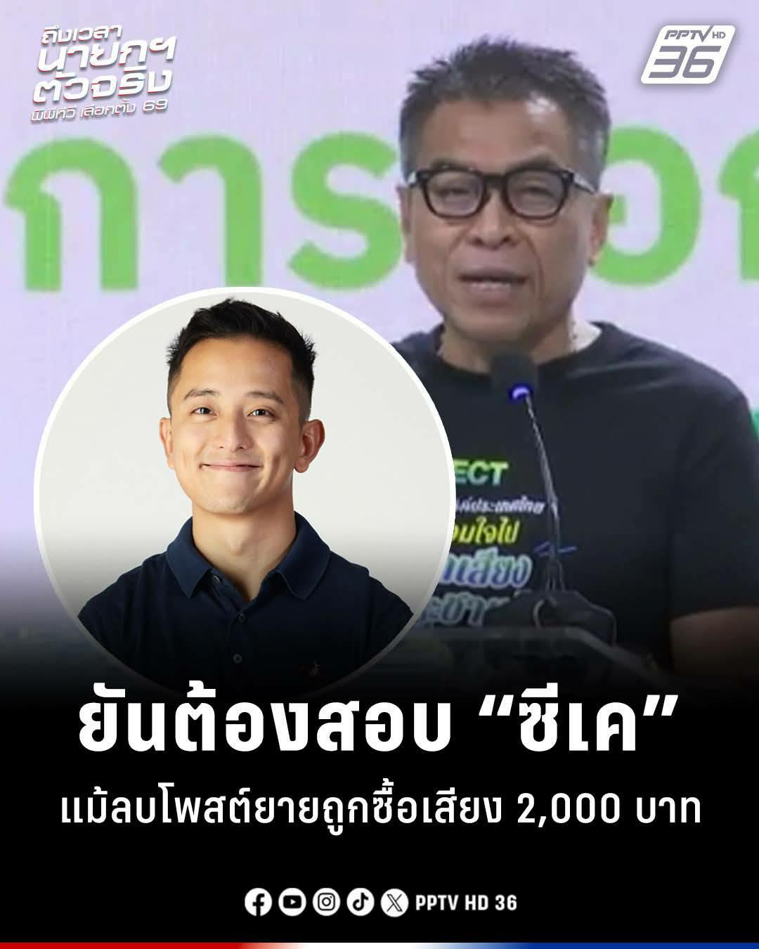 นายแสวง บุญมี เลขาธิการ กกต. เปิดเผยในรายการกรรมกรข่าวคุยนอกจอ ถึงประเด็นที่ ซีเค เจิง (CK Cheong) ผู้บริหารและอินฟลูเอนเซอร์สายธุรกิจชื่อดัง โพสต์ข้อความระบุว่ามีพรรคการเมืองซื้อเสียงคุณยาย 2,000 บาท