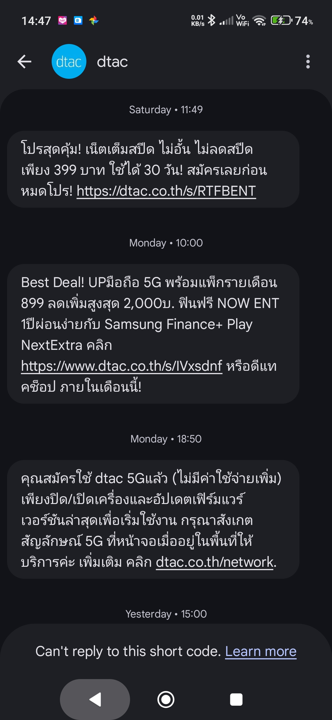 [DTAC] คือค่ายคุณมีอะไรนักหนา? เดี๋ยวนี้ส่ง SMS โฆษณามากวนใจไม่เลิก! ล่าสุดก็คิดค่าบริการผิด! แล้วตอนนี้เบอร์ก็ถูกระงับ!