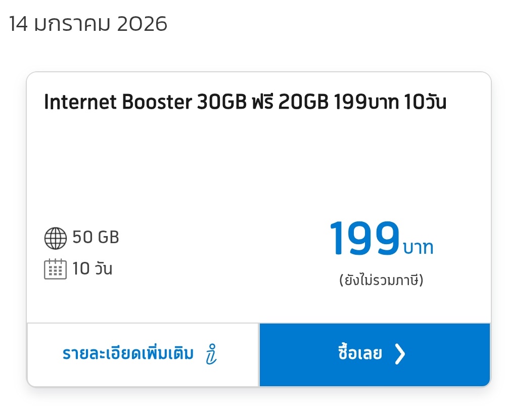 โดนคิด " Internet Booster 30GB ฟรี 20 GB 199 บาท 10 วัน " ลงไปในรายเดือนผมอีกแล้ว ???