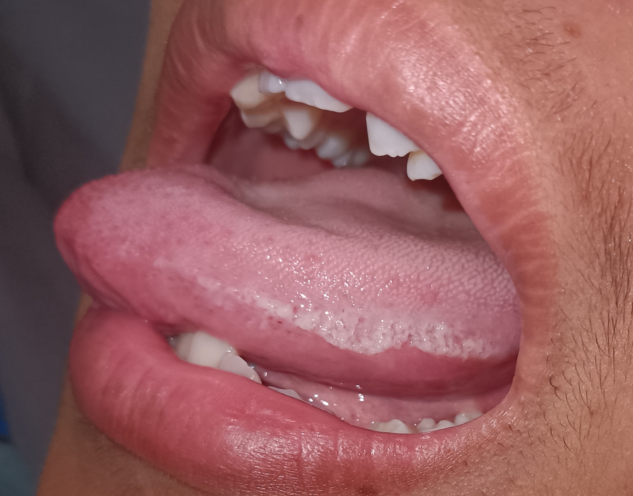 คือผมพึ่งจะมาดูลิ้นตัวเองอะครับ ตื่นเช้ามาเนี่ยผมจะมาส่องกระจกดูลิ้นตัวเองทุกวันเลยครับ ทุกเช้าที่ผมยังไม่แปรงฟัน มันจะมีเหมือนคาบนมสีขาวครับ เป็นขุยๆ แต่ผมก็ขูดลิ้นโดยใช้แปรงถูลิ้น แล้วตบท้ายด้วยน้ำ