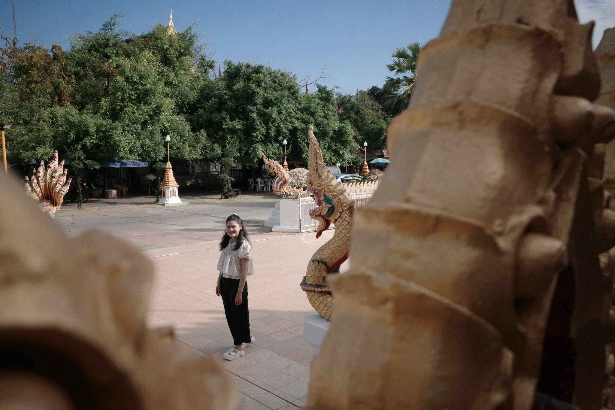 สำหรับเรา แค่ได้มายืนชมความสวยงามของสถาปัตยกรรมจากด้านล่าง ได้ไหว้พระขอพรเพื่อความสบายใจก่อนเดินทางต่อ แค่นี้ก็เพียงพอแล้วครับ ไม่จำเป็นต้องปีนป่ายให้เหนื่อยหอบ เพราะเป้าหมายของเราวันนี้ไม่ใช่การพิชิตยอดเจดีย์ แต่คือการเก็บแรงไว้ไปหาที่กางเต็นท์เท่ๆ ในคืนนี้มากกว่า พอไหว้พระเสร็จ เราก็ตกลงกันว่า 'ไปเถอะ' แล้วมุ่งหน้าออกจากตัวเมืองขอนแก่นทันทีครับ