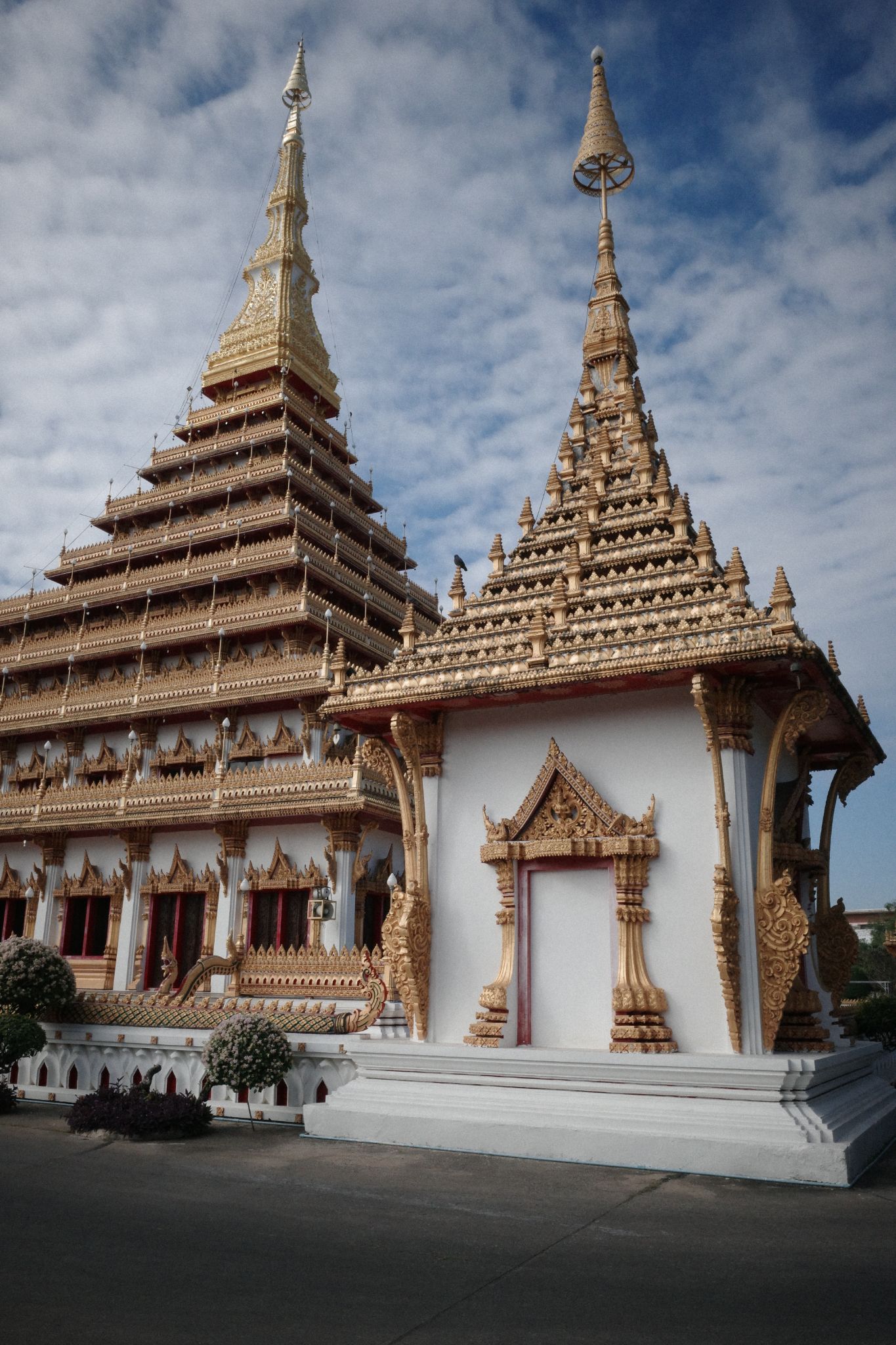 หลังจากสะดุดตากับเจดีย์สีทอง 9 ชั้นมาตั้งแต่เมื่อวาน วันนี้เราเลยต้องขอแวะเข้ามาที่วัดหนองแวงสักหน่อยครับ ความยิ่งใหญ่ของที่นี่สมคำร่ำลือจริงๆ ที่นี่มีถึง 9 ชั้นให้เราขึ้นไปชมด้านบน แต่เราไม่ได้ขึ้น 555+