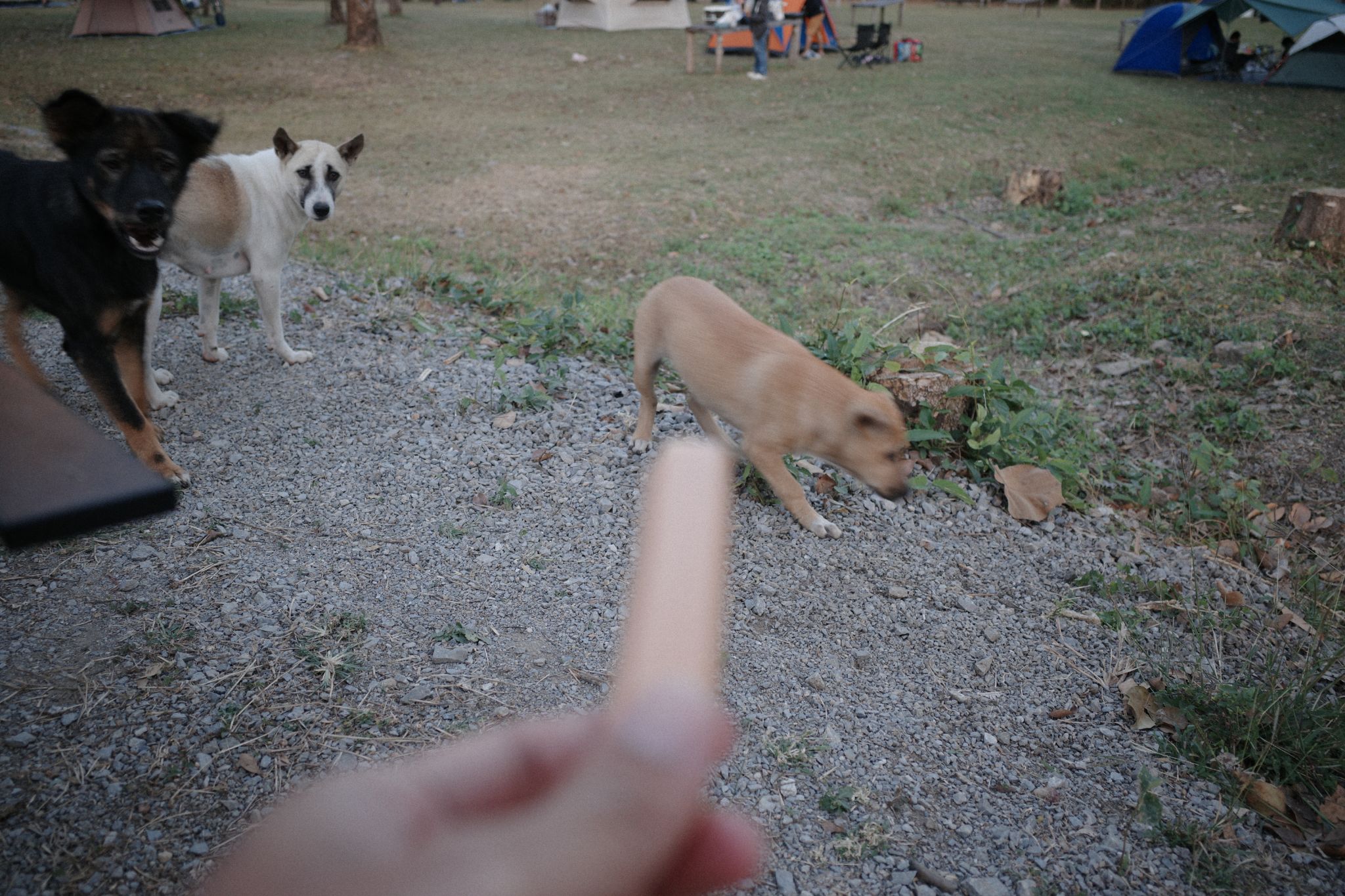 เรานั่งอยู่ได้สักพักก็ต้องยอมแพ้ รีบเก็บอุปกรณ์ทุกอย่างแล้วมุดเข้าเต็นท์ทันที ไม่นานนักผมก็เข้าสู่ห้วงนิทราที่แสนสงบ แต่ก็นั่นแหละครับ โชคชะตายังไม่ปล่อยให้เราหลับยาวขนาดนั้น เพราะเจ้าถิ่นที่นี่ซนมากกก! กลางดึกมีสะดุ้งตื่นเป็นระยะเพราะน้องหมาวิ่งเล่นบ้าง เห่าหอนรับส่งกันบ้างเป็นจังหวะเอาเรื่องเลยทีเดียว แต่มันก็เป็นสีสันของธรรมชาติครับ