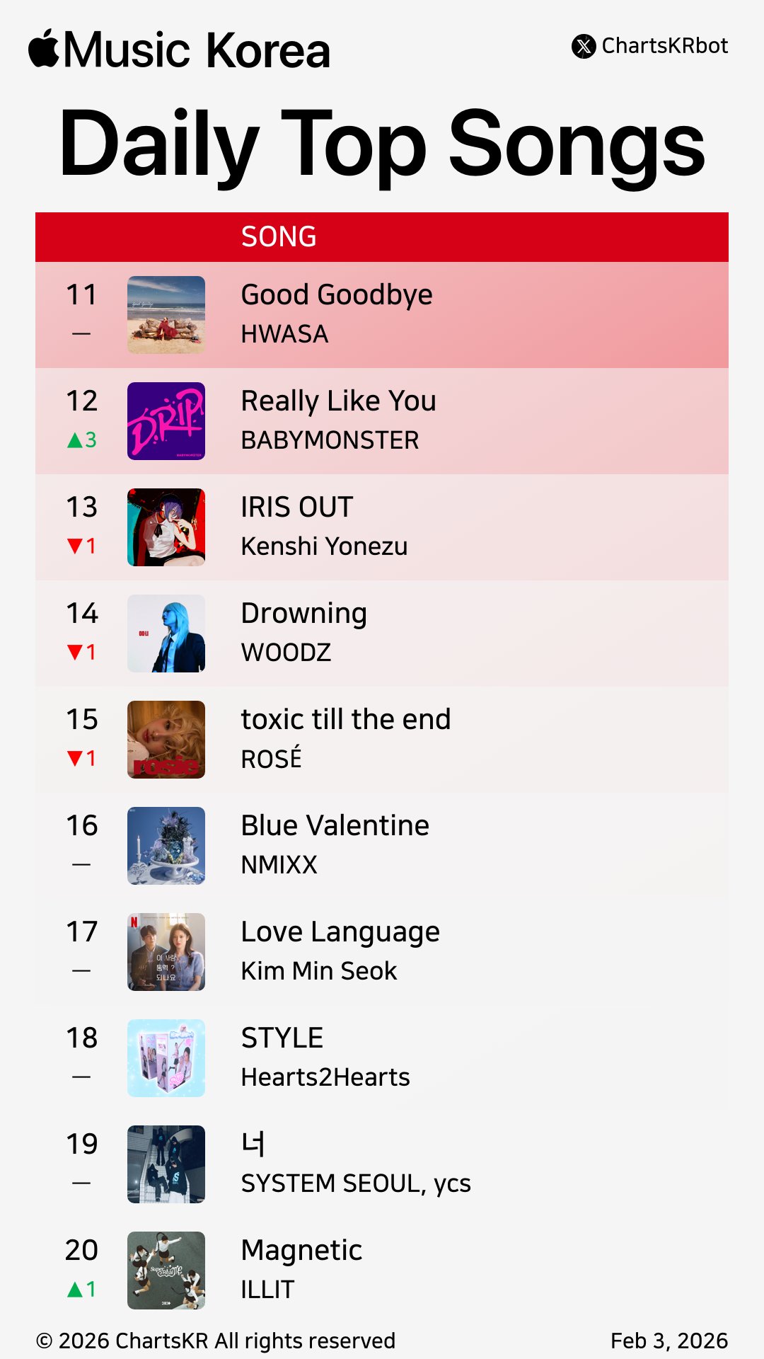 เดี๋ยวแอนตี้บางตัวจะมาอ้างดีแต่ YouTube Music ไหนล่ะชาร์ตอื่นในเกาหลี งั้นก็ขออ้าง Apple Music South Korea เลยละกัน ซึ่งถือว่าเป็น