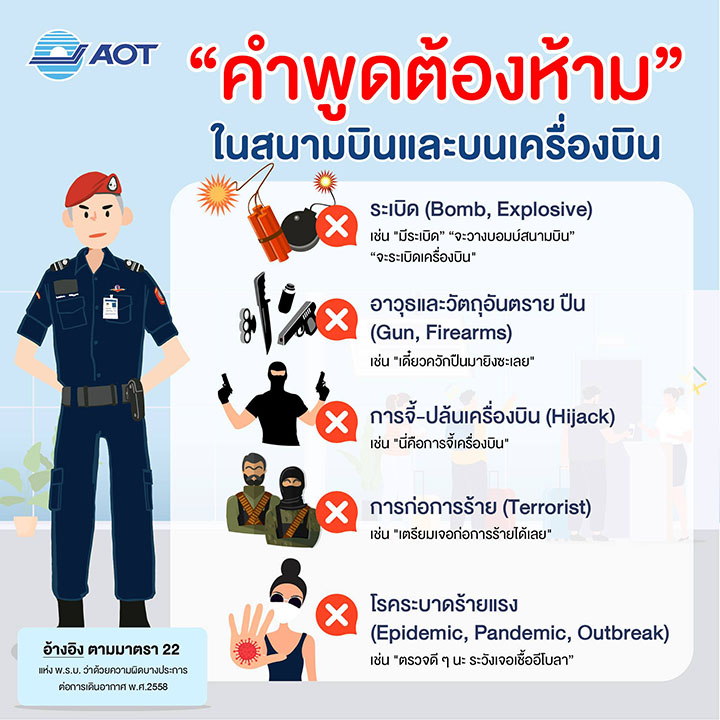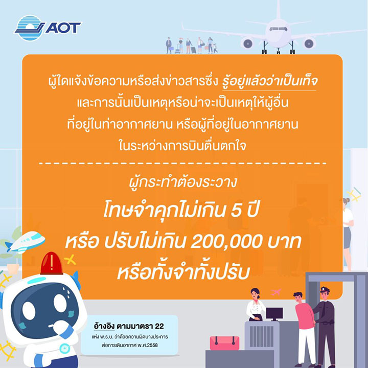 พูดหยอก ๆ เสี่ยงจำคุก ! ด้วยความปราถนาดี จาก บริษัท ท่าอากาศยานไทย จำกัด (มหาชน) AOT