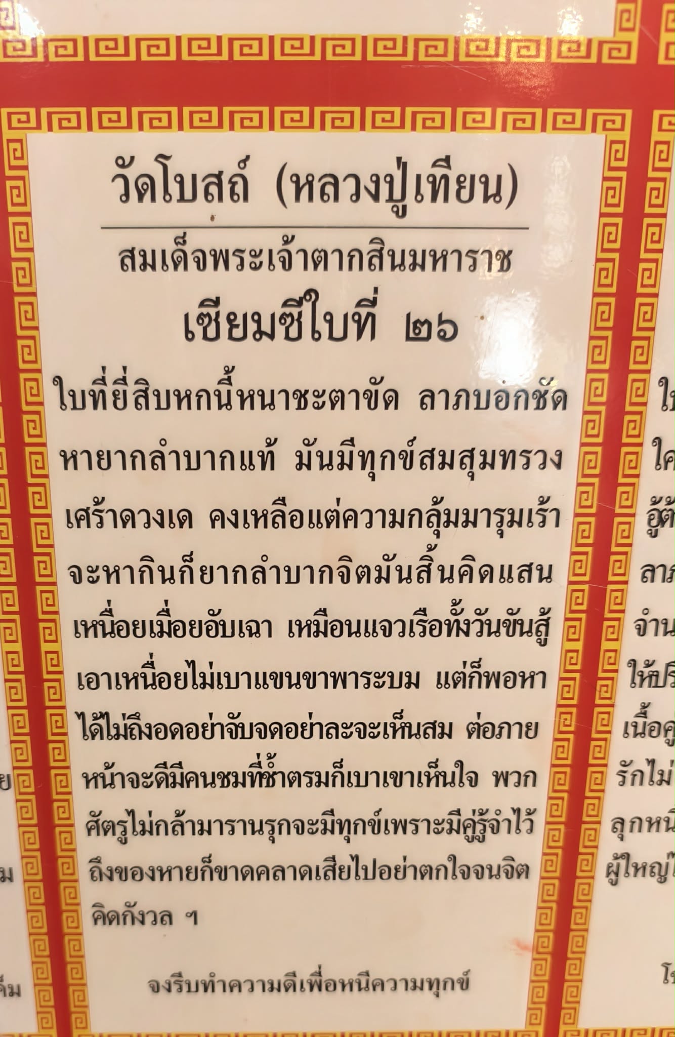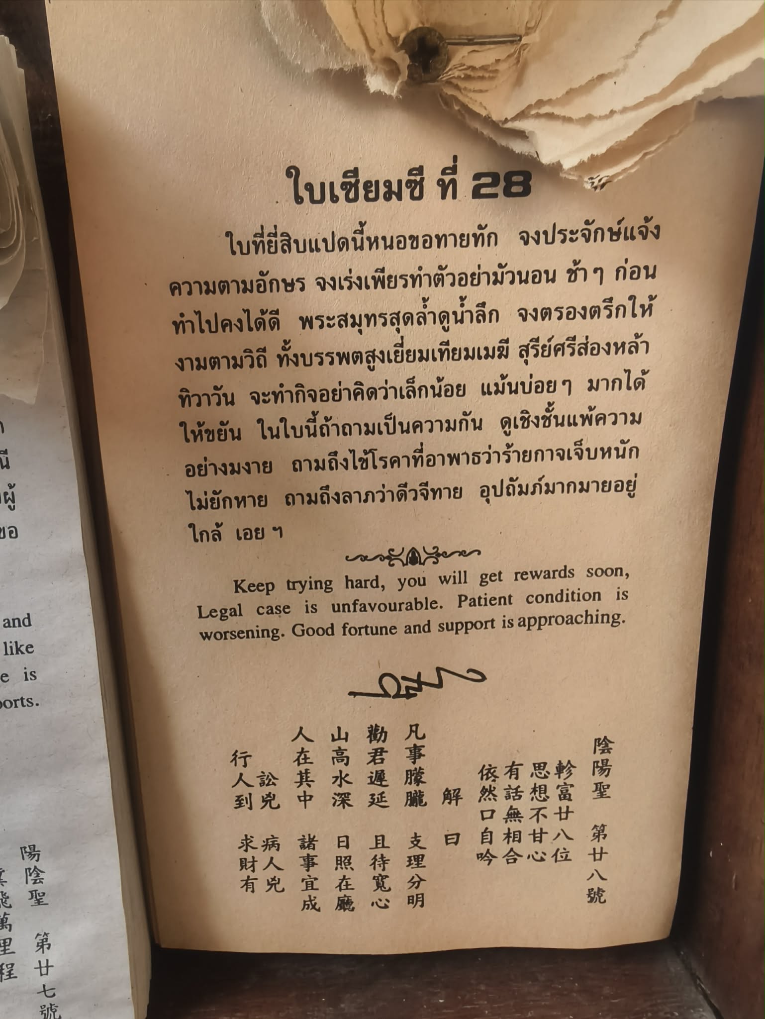 ใบที่สามนี้ได้เลข 26 ความหมายก็ประมาณว่า ให้ไม่ท้อกับอุปสรรค สิ่งๆดีจะรออยู่ วัดโบสถ์หลวงปู่เทียน