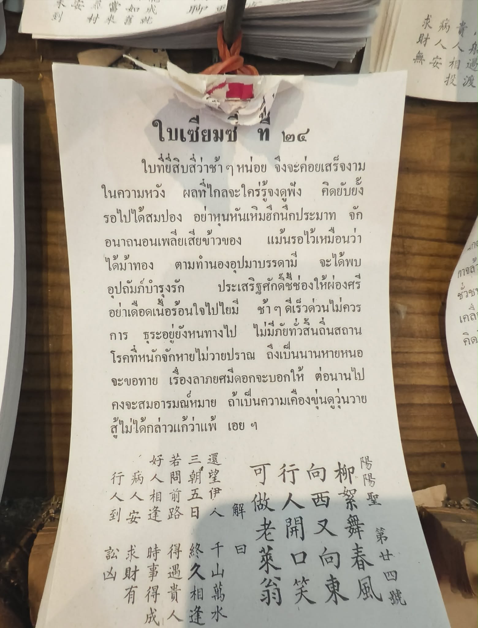 และก็ได้มีโอกาสไปเสี่ยงเซียมซี 3 ที่ ความหมายเซียมซีก็ได้ความหมายใกล้ๆกันไม่แตกต่าง คิดว่าน่าจะเกี่ยวกับเรื่องราวที่ตัวเองพบเจอนี่ล่ะ