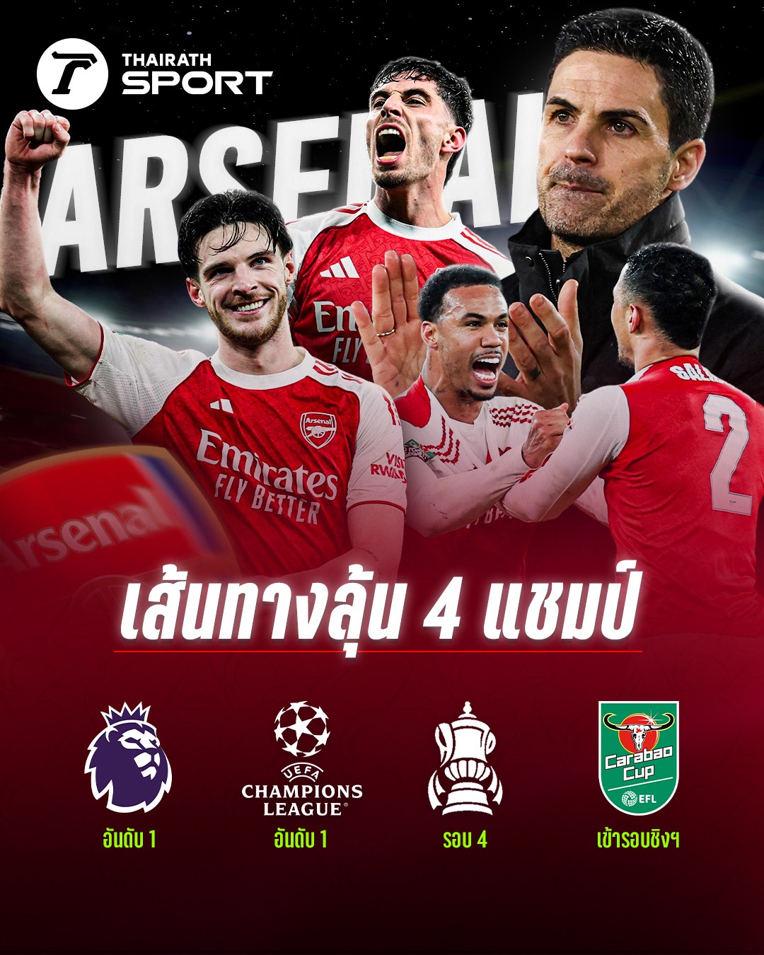 Arsenal จะคว้า 4แชมป์เป็นครั้งแรกได้หรือไม่