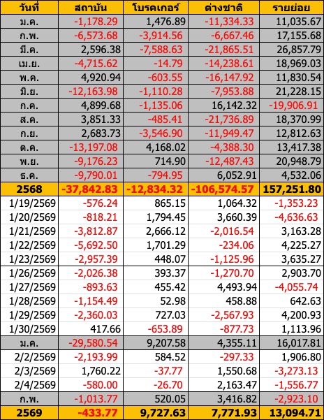 Sinthorn Summary : 2/2/2569 : ต่างชาติขายสุทธิ -297.33 ลบ.
