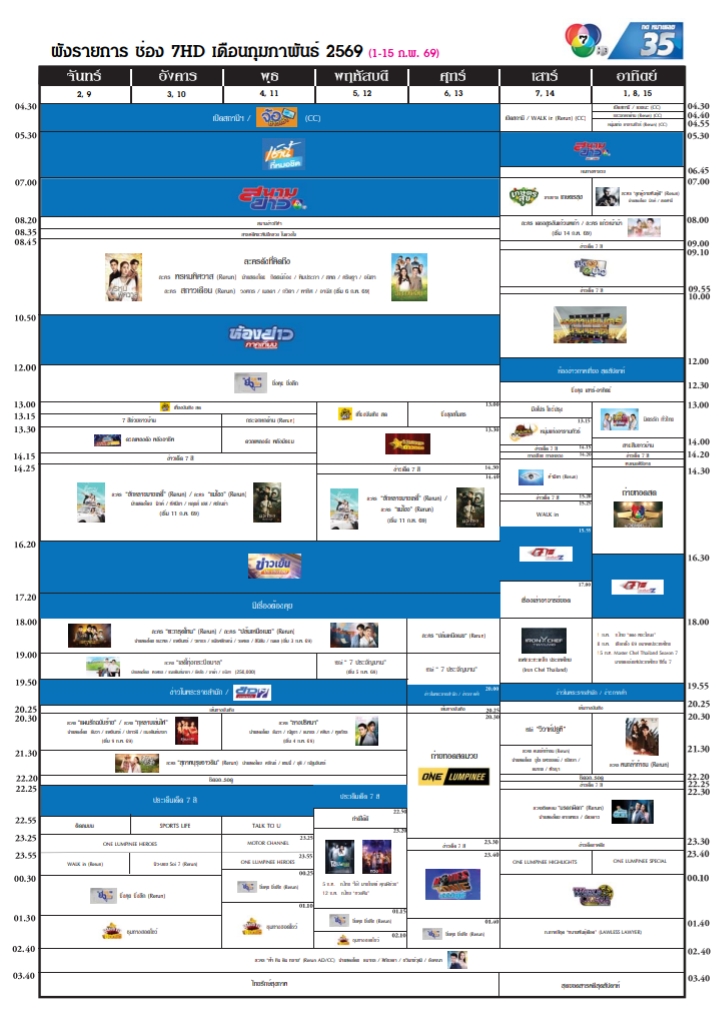ผังช่อง7 ครึ่งก.พ. จร้าาา