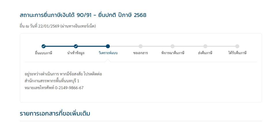 ยื่นภาษีปี2568 เมื่อ1 ม.ค. 2569 กับสรรพากรนนทบุรี เขต 2 มีใครสถานะขยับถึงไหนบ้างแล้ว