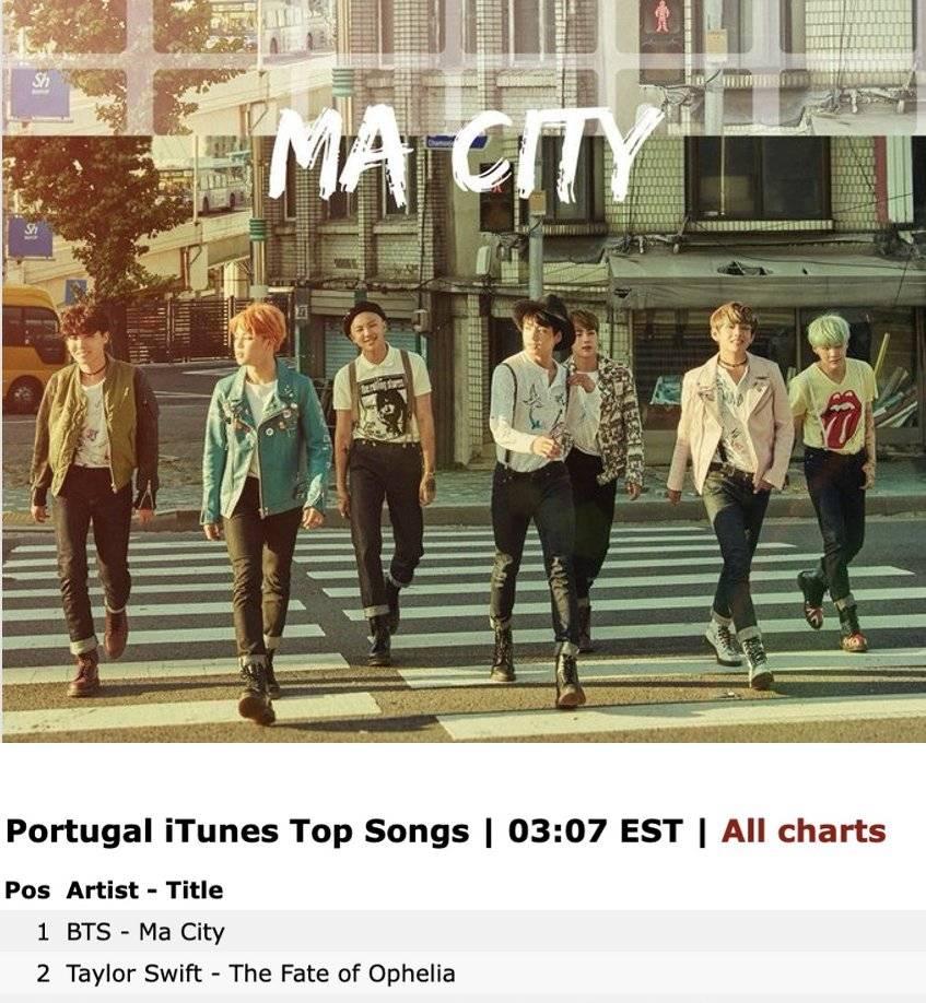 ทันทีที่ BTS เดินทางถึงประเทศโปรตุเกส เพลง "MA CITY" ของพวกเขาก็พุ่งขึ้นอันดับ 1 บน iTunes Portugal ทันที!